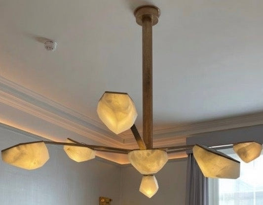 Fathom Stone Art's Alabaster Stone Lighting Collection is a new line of natural stone with LED lighting. These art lights are bespoke and hand-made to order by BC's top stone art designers. The team of artists & designers carve pure Alabaster stone boulders into modern lighting with captivating vibrancy. Each piece has an alluring translucency that displays the artistic formation of natural stones. Begin your collaboration with Fathom Stone Art for your future lighting projects and see the beauty of stone displayed in your space from the mines of the Canadian mountains and beyond. Fathom Stone Art can assist with the design of bespoke stone lighting that will add a natural stone lighting ambiance to your space. These lighting masterpieces are made with fine finishes of antique copper, brass, nickel, and more.