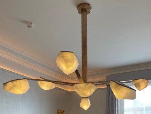 Fathom Stone Art's Alabaster Stone Lighting Collection is a new line of natural stone with LED lighting.  These art lights are bespoke and hand-made to order by BC's top stone art designers.  The team of artists & designers carve pure Alabaster stone boulders into modern lighting with captivating vibrancy.  Each piece has an alluring translucency that displays the artistic formation of natural stones. Begin your collaboration with Fathom Stone Art for your future lighting projects and see the beauty of stone displayed in your space from the mines of the Canadian mountains and beyond.  Fathom Stone Art can assist with the design of bespoke stone lighting that will add a natural stone lighting ambiance to your space.  These lighting masterpieces are made with fine finishes of antique copper, brass, nickel, and more.