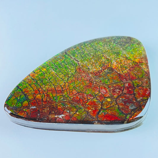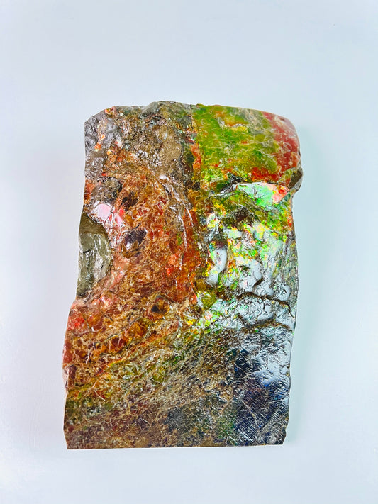 Beauty is in the eye of the beholder. Ammolite fossils can have all the colors of the rainbow. Red and green are the most common. Most gemstone colors come from light absorption like the way a diamond sparkles when the light comes in through the table. The color of Ammolite however is achieved from light interference as it rebounds through the stacked layers of aragonite.