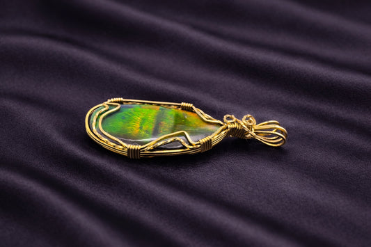 18K Yellow Gold Ammolite Pendant - Rare Picture Ammolite