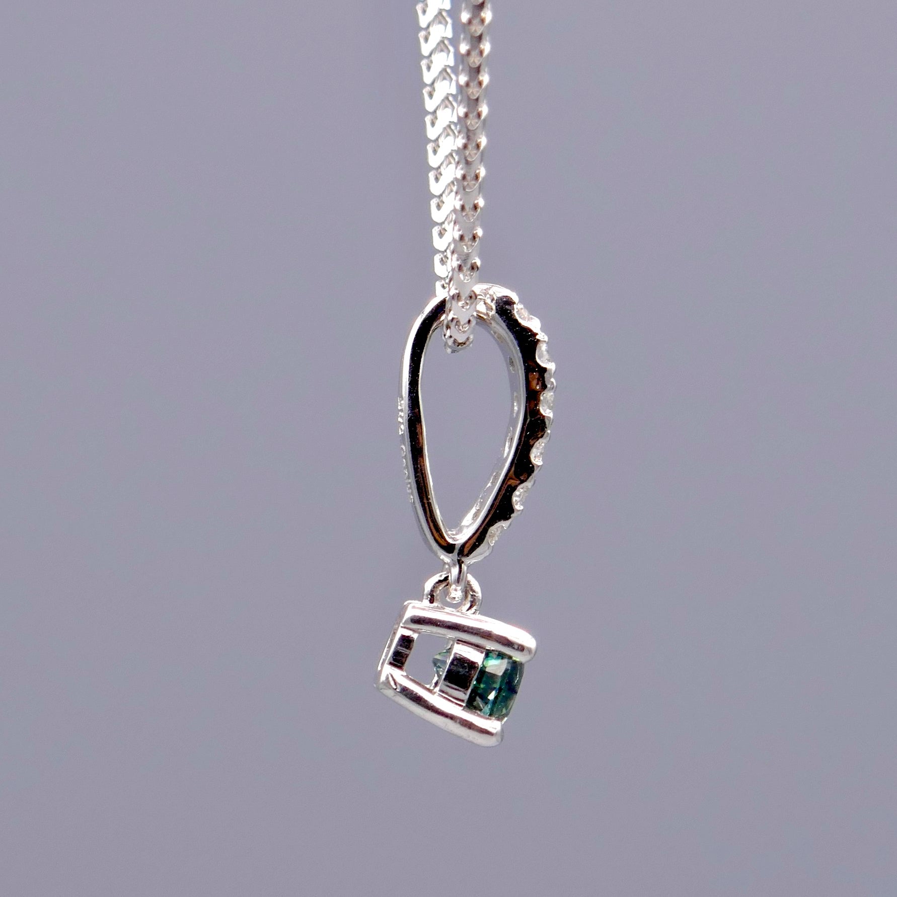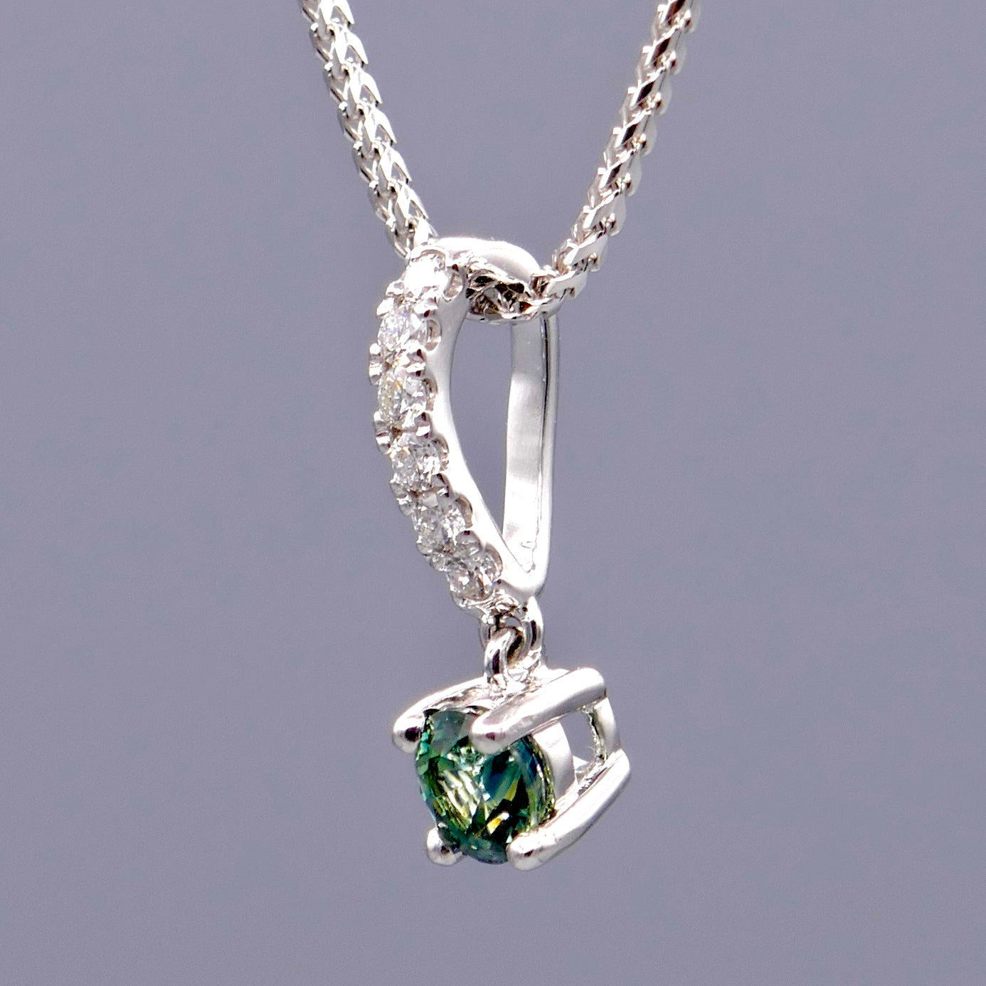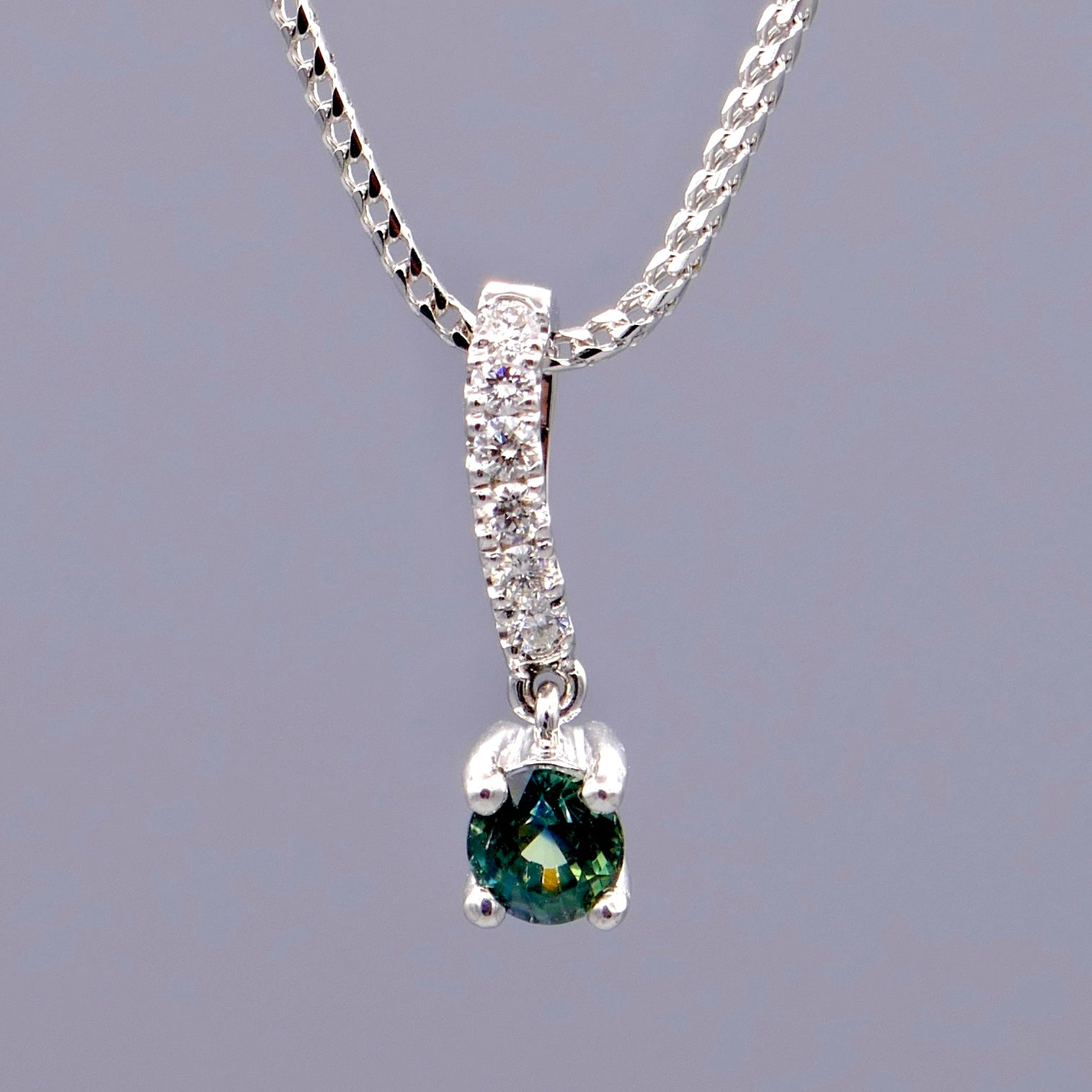 18K White Gold Necklace w/ Montana Sapphire & Diamonds