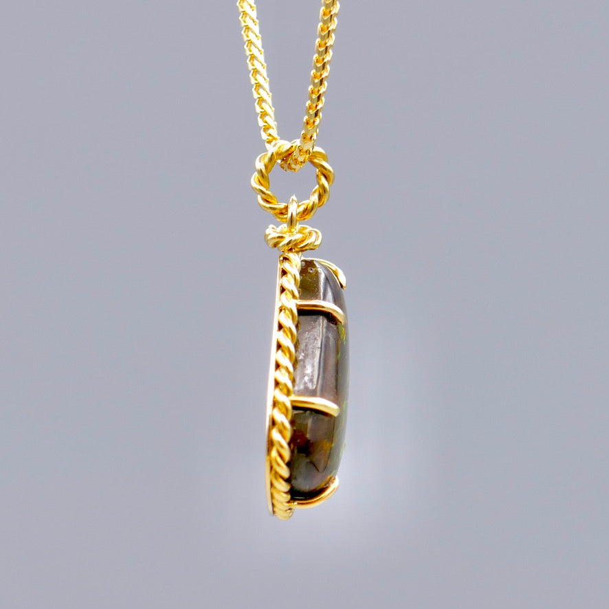 18K Yellow Gold Roped Ammolite Necklace - Red