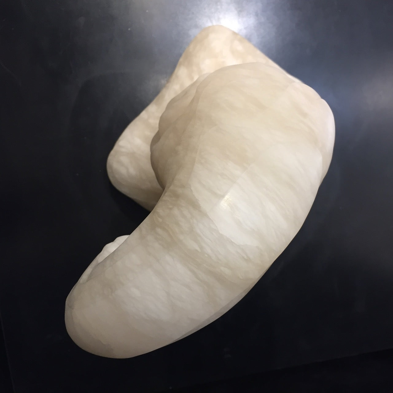 "Big White Snow Tree" is an enchanting sculpture that doubles as an artful light fixture, designed to evoke the serene beauty of snow-covered trees on Whistler Mountain. Crafted from Italian white alabaster, the piece radiates a soft, ethereal glow when illuminated, accentuating the stone's natural translucency. The swirling, layered design mimics the delicate accumulation of snow on tree branches, creating a sense of movement and tranquility. Measuring 10" x 8" x 16" and weighing 29 lbs, this sculpture is a substantial yet graceful addition to any space. The integration of LED lighting allows it to transform from a captivating daytime sculpture to a luminous nighttime centerpiece. This unique, one-of-a-kind piece not only captures the essence of winter's beauty but also brings a functional elegance to its surroundings.