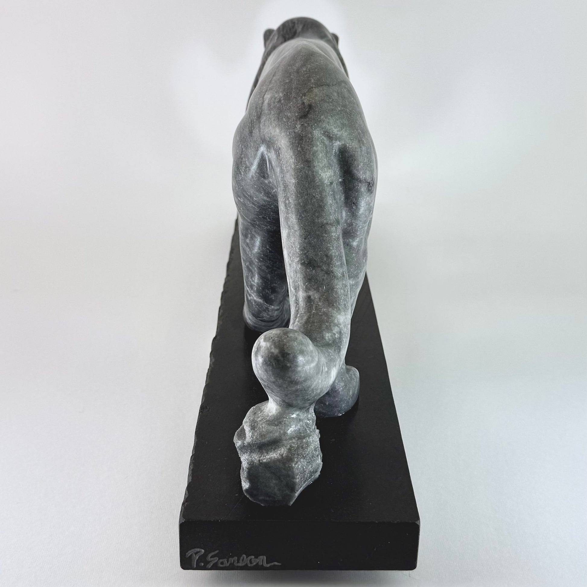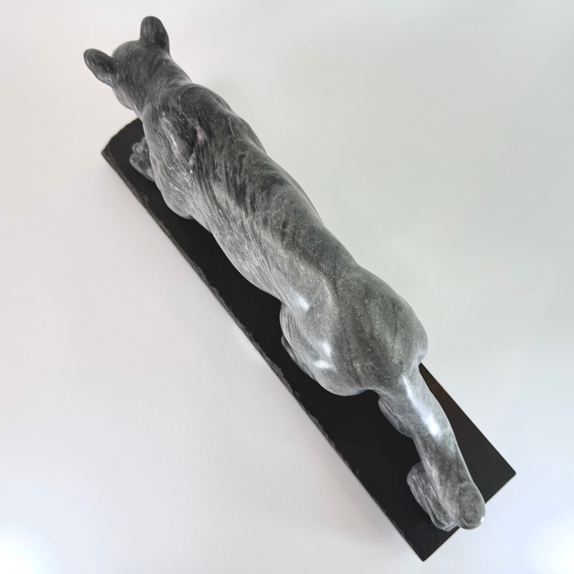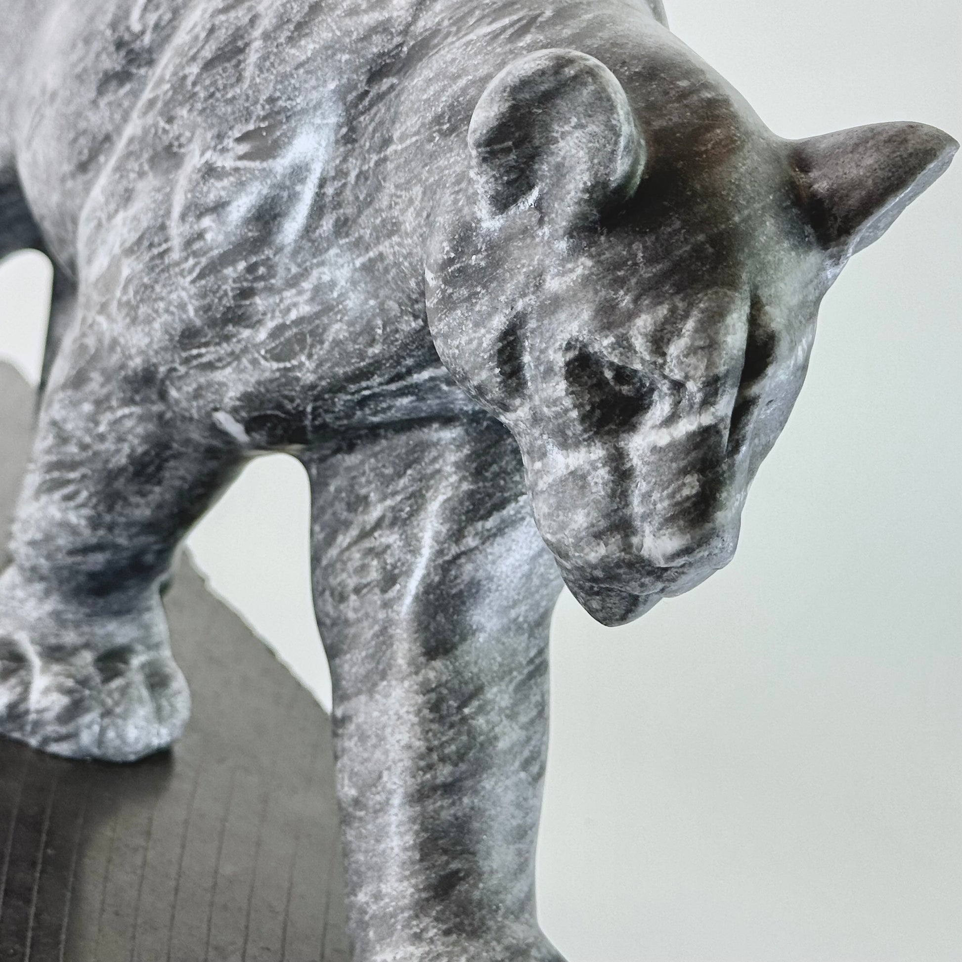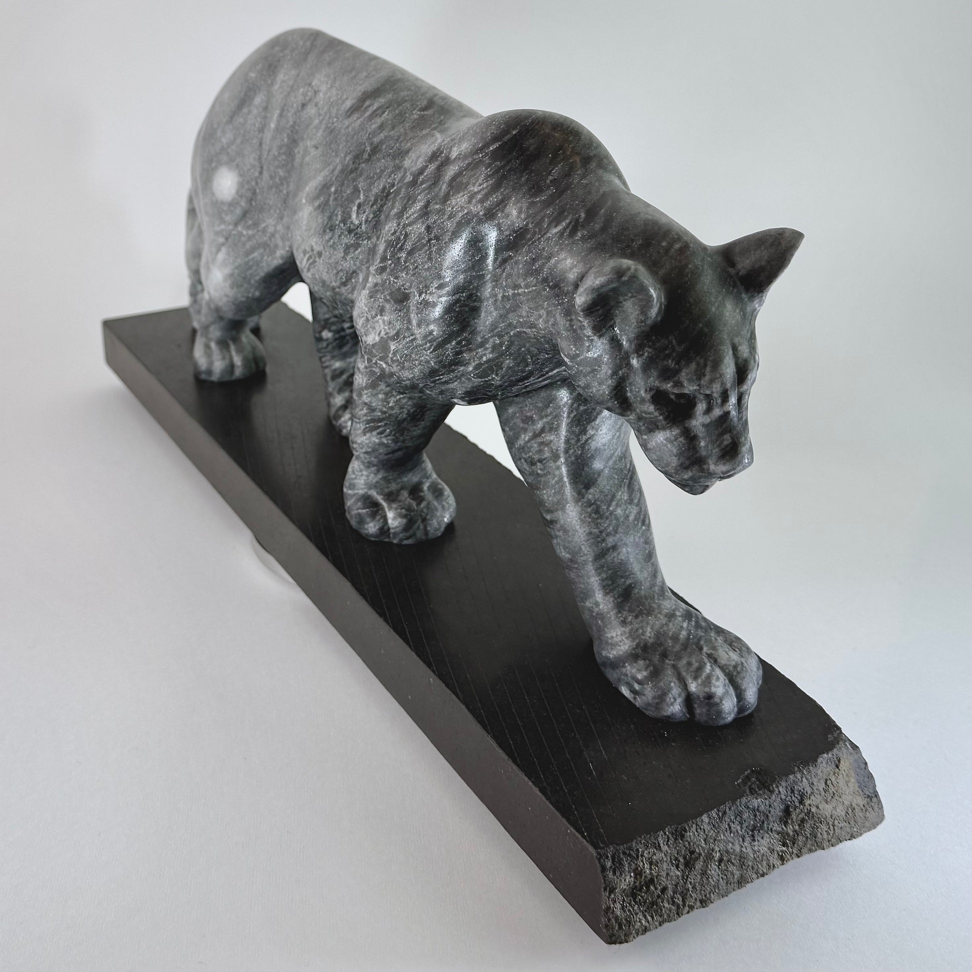 Carved from Vancouver Island Gray Marble, this striking Cougar sculpture captures the raw power and grace of nature's apex predator. Standing 22" tall and weighing a substantial 28 lbs, this handcrafted piece brings dramatic presence to any space. Each sculpture is proudly made in British Columbia, showcasing the artistry and quality that defines Fathom Stone Art. A bold statement for collectors who appreciate wildlife art and the natural beauty of Canadian stone.