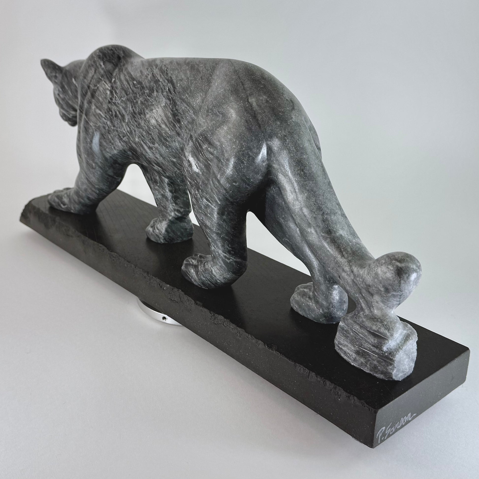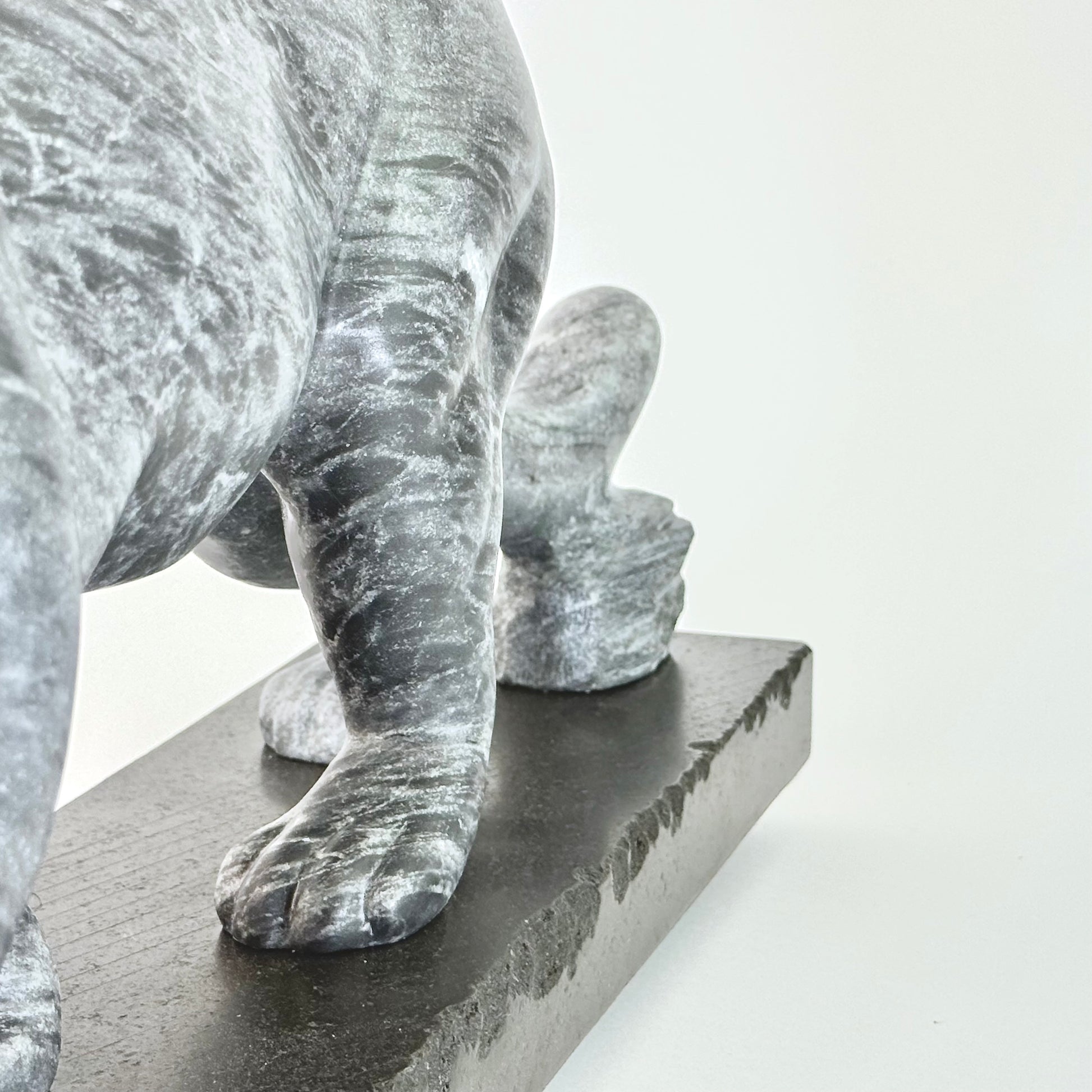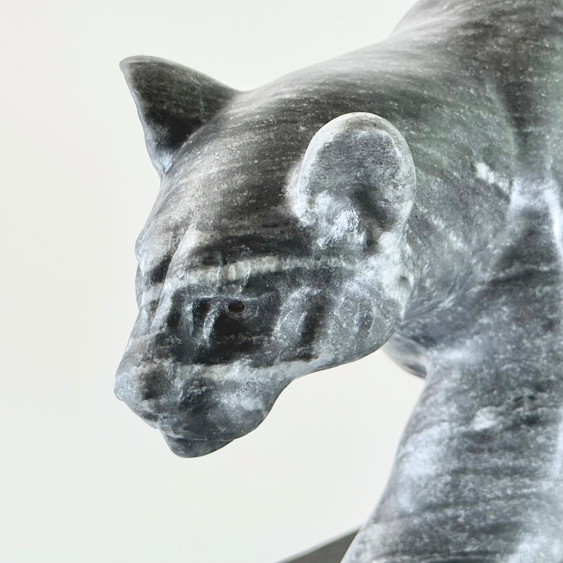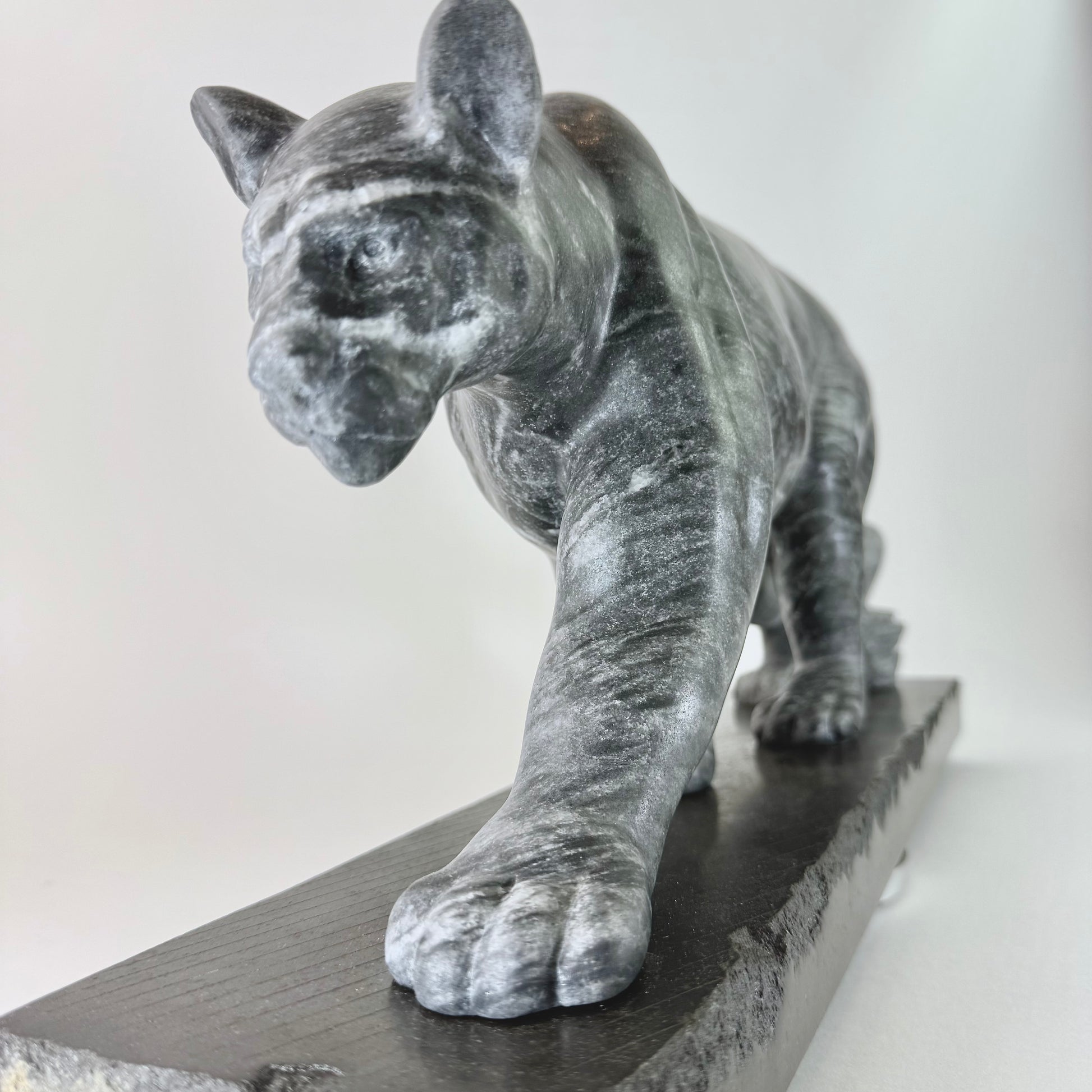 Carved from Vancouver Island Gray Marble, this striking Cougar sculpture captures the raw power and grace of nature's apex predator. Standing 22" tall and weighing a substantial 28 lbs, this handcrafted piece brings dramatic presence to any space. Each sculpture is proudly made in British Columbia, showcasing the artistry and quality that defines Fathom Stone Art. A bold statement for collectors who appreciate wildlife art and the natural beauty of Canadian stone.