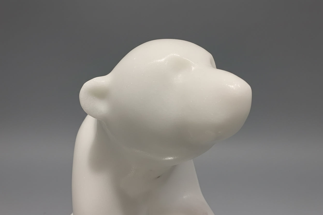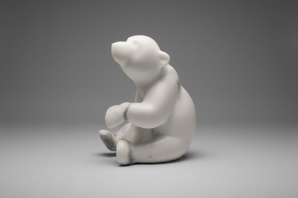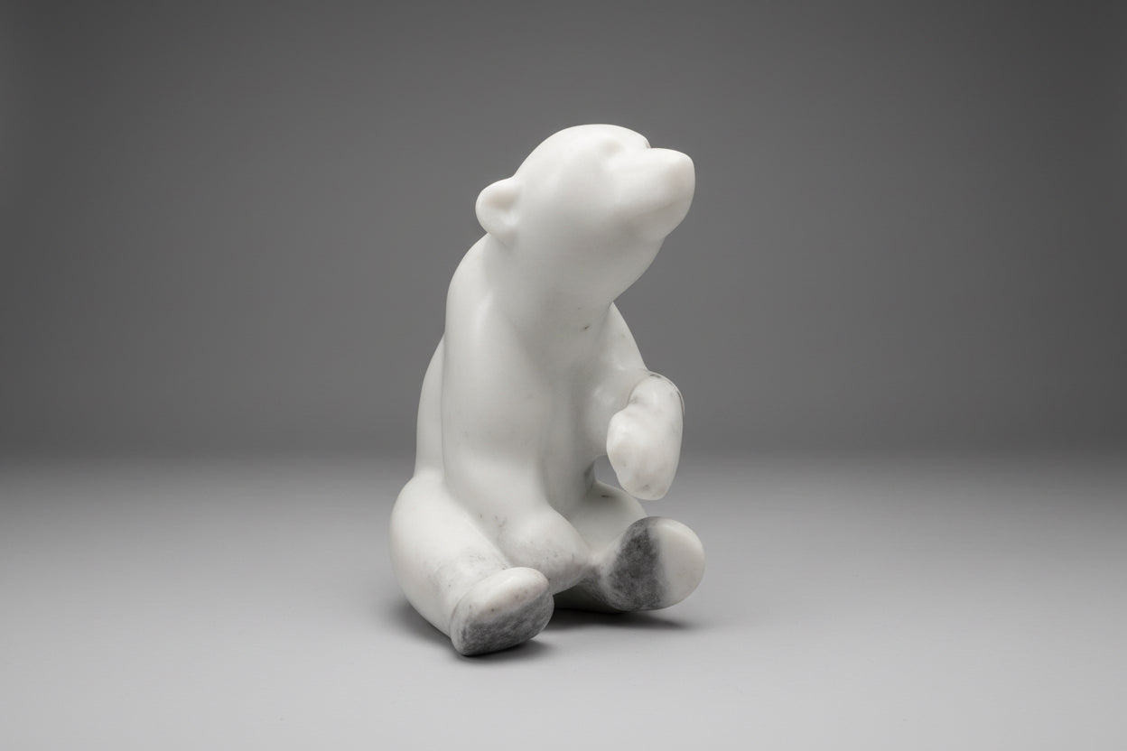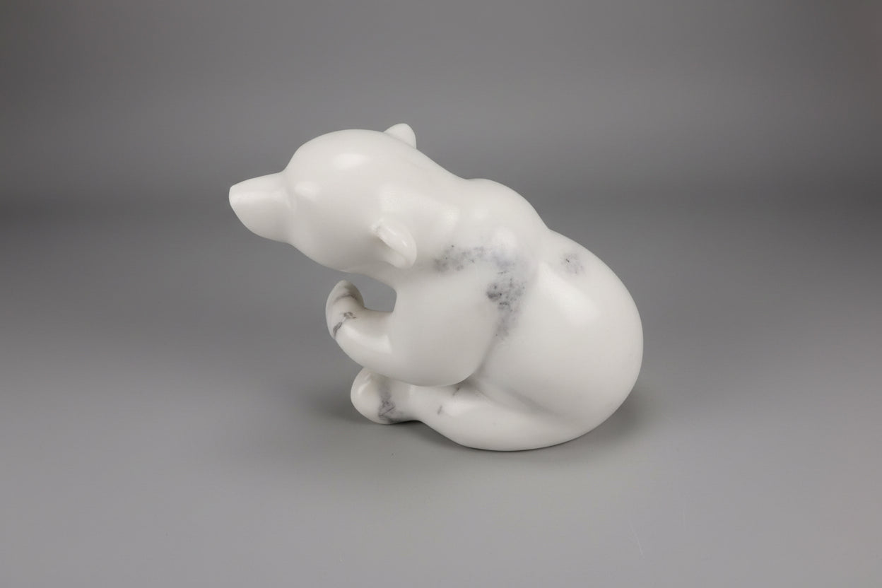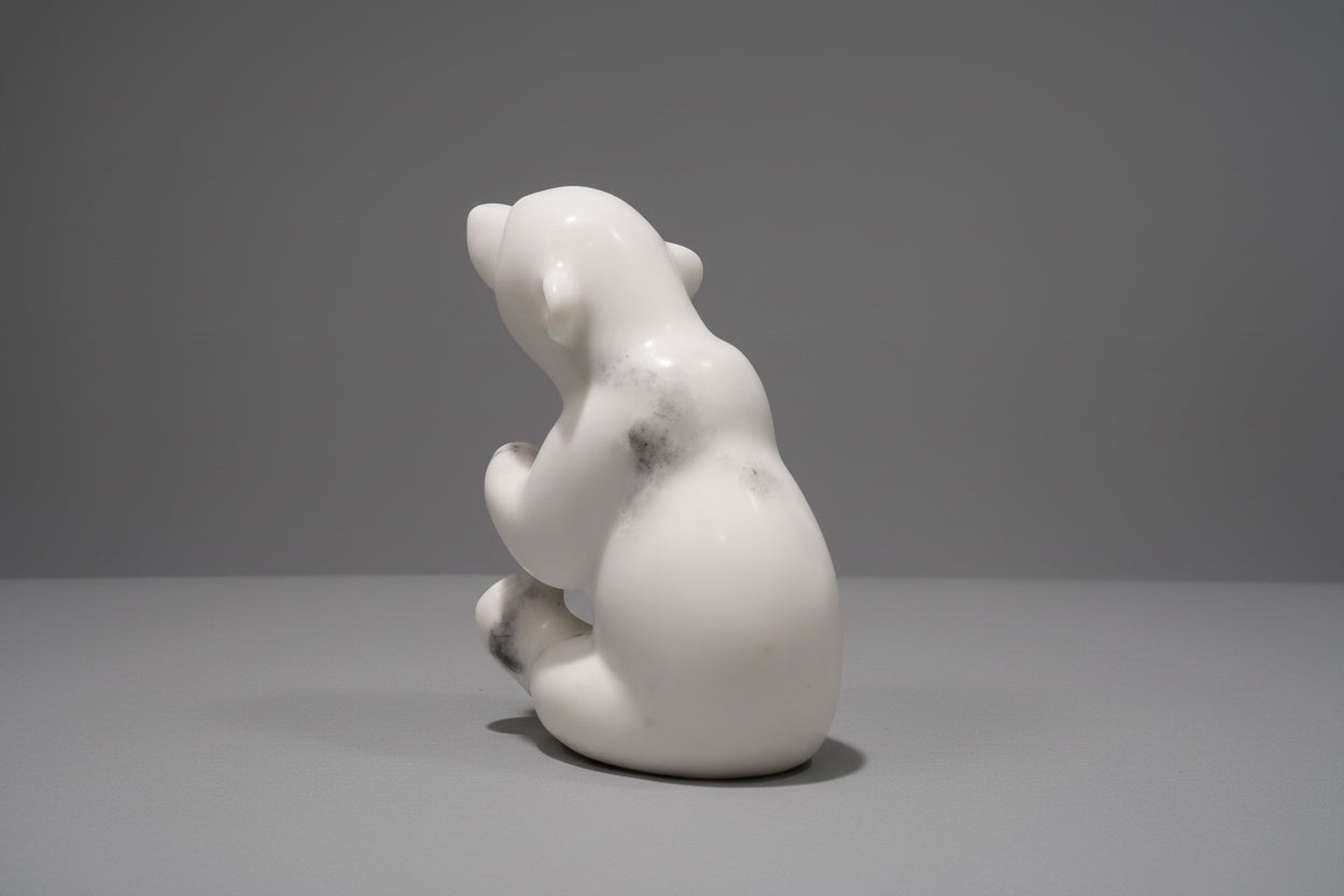 First Winter—a marble bear sculpture celebrating a cub's inaugural encounter with snow. Handcrafted in Whistler, BC from Italian white marble, this 8" x 6" x 9.5" piece weighs 18 pounds and captures the magic of that transformative moment. The luminous stone mirrors frost and ice, bringing the wonder and innocence of a young bear's first winter into your home.