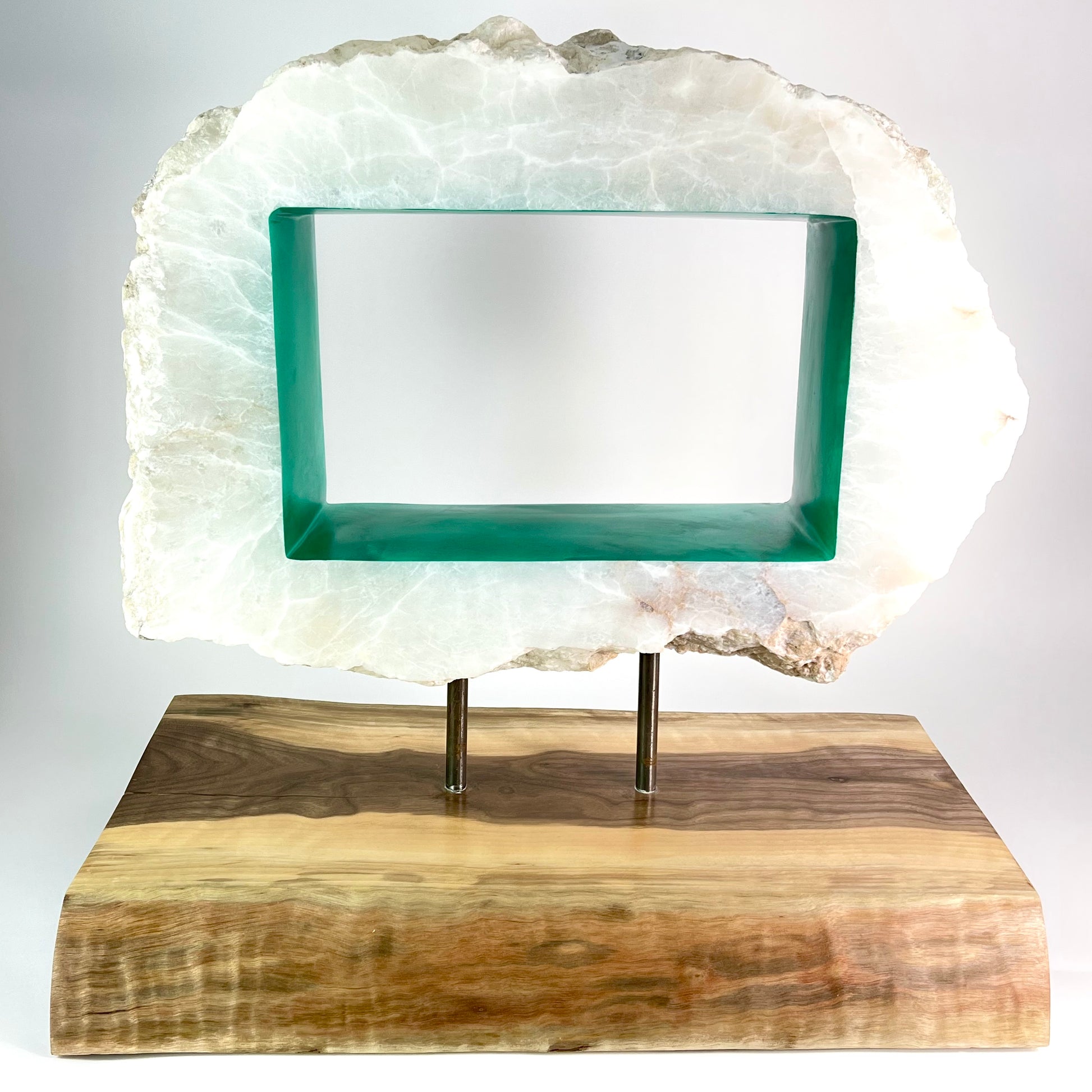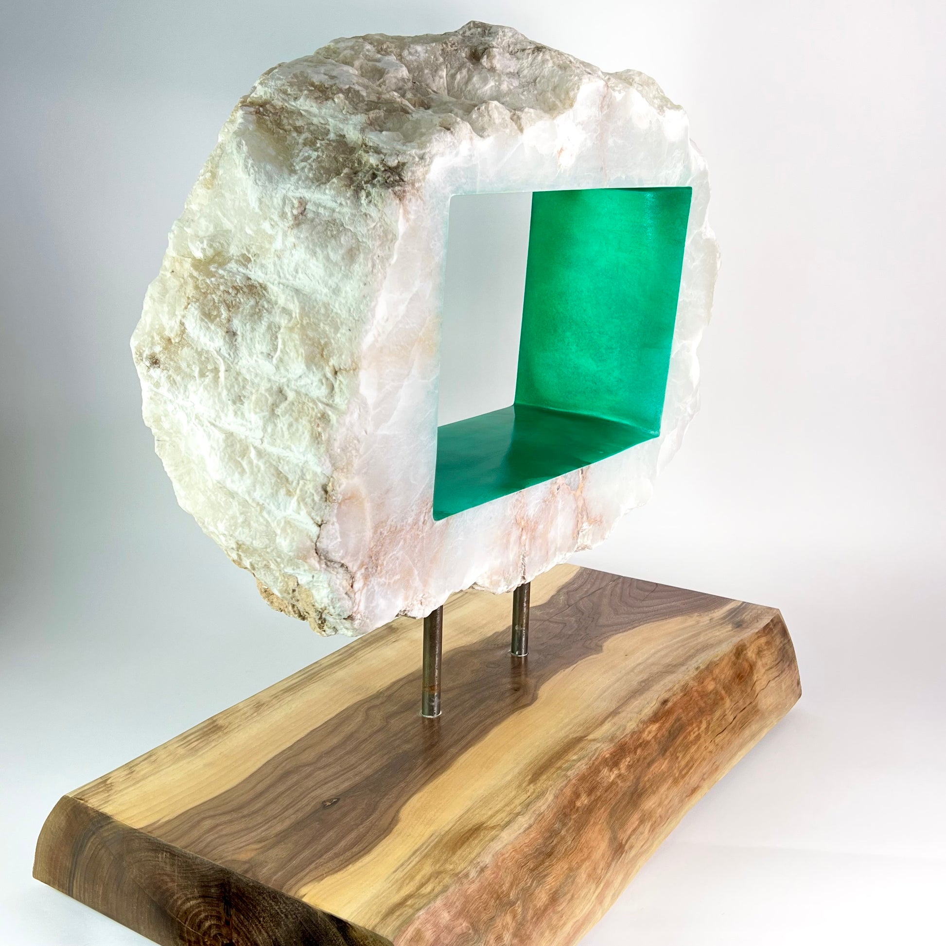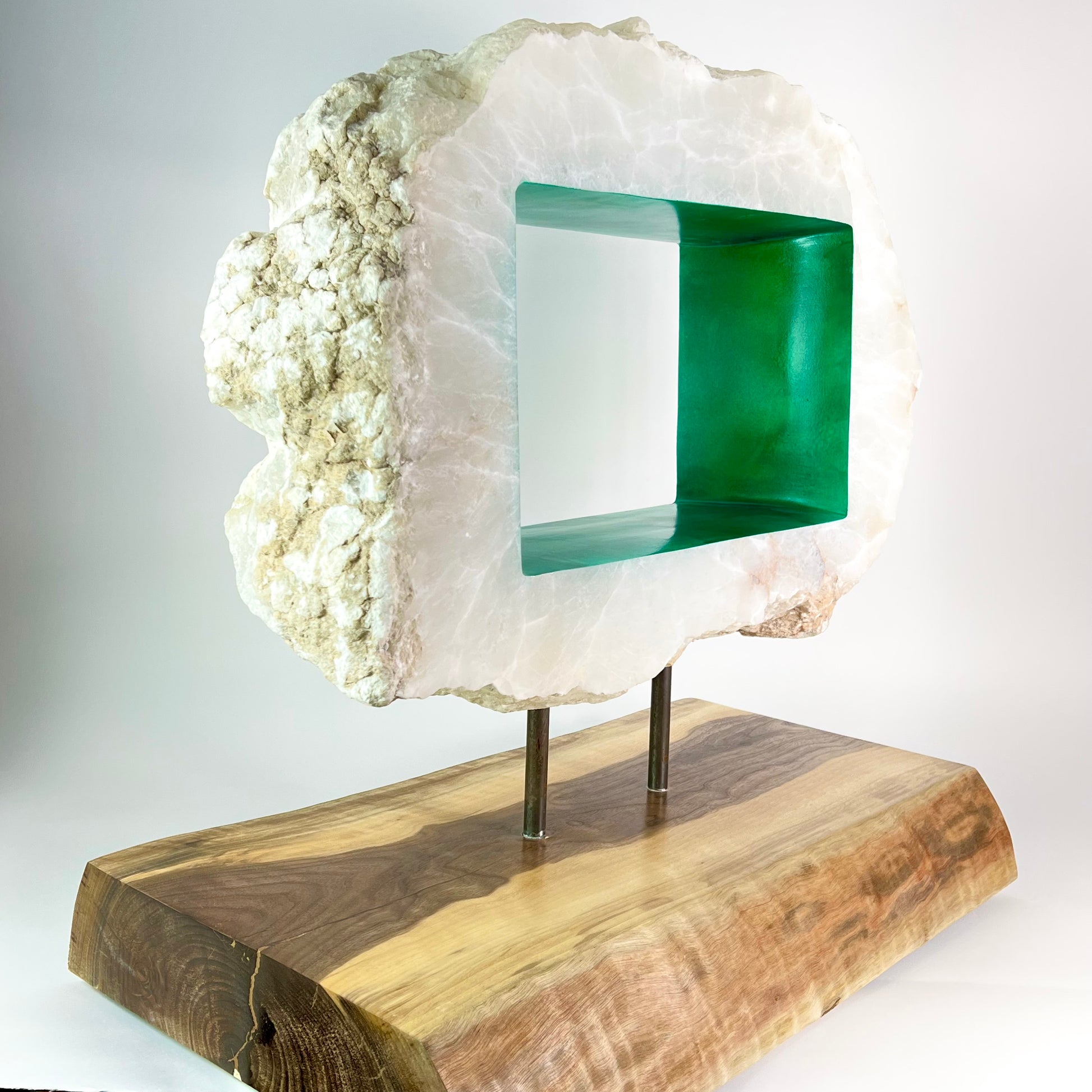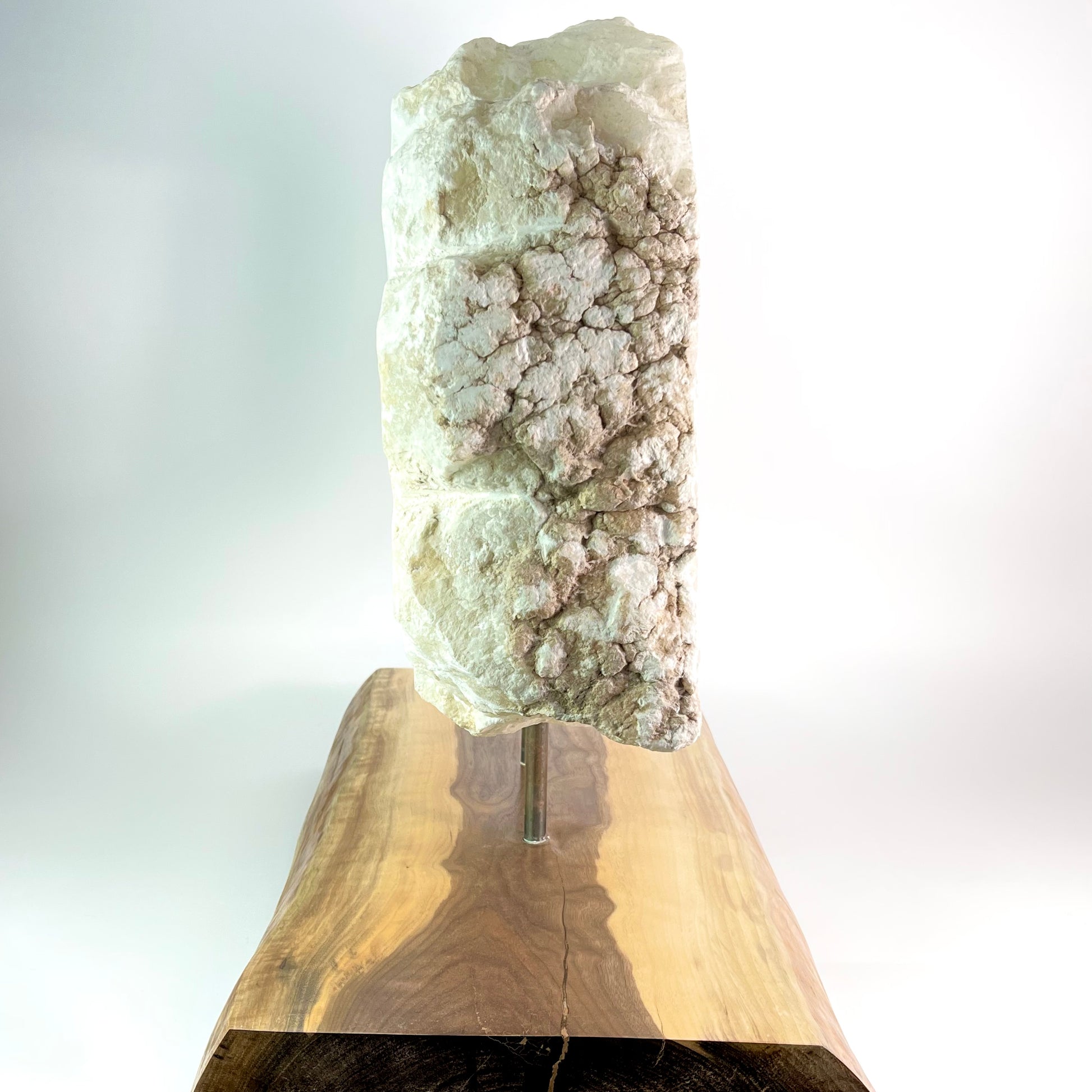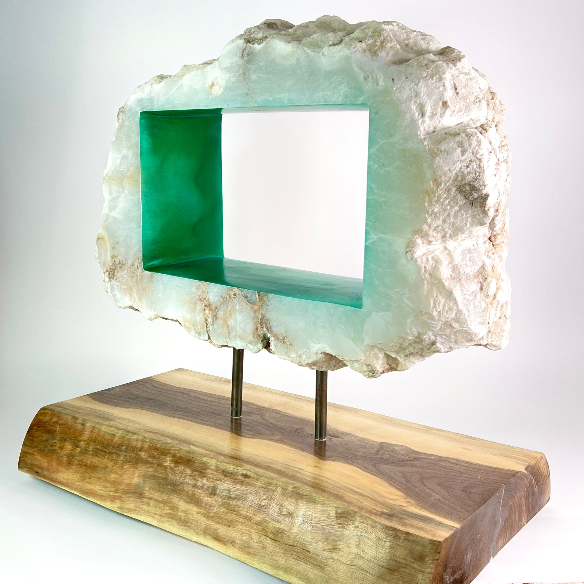 This striking series of stone sculptures celebrates the harmonious contrast between nature’s raw beauty and the artistry of human craftsmanship. Each piece is meticulously hand crafted from Italian alabaster, a translucent stone prized for its noble origins and luminous qualities. The sculptures feature a rugged, natural rough exterior, preserving the stone's organic form, while the interiors are polished to a sleek, lustrous finish.