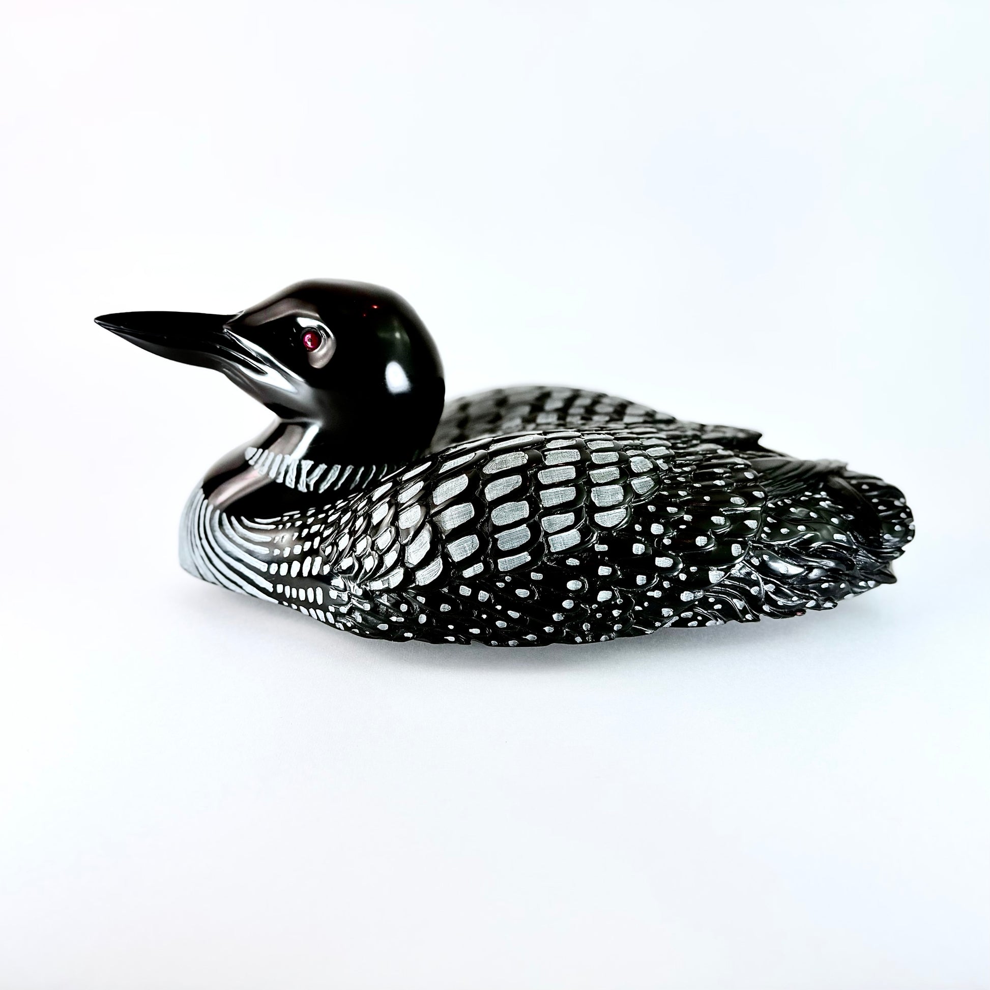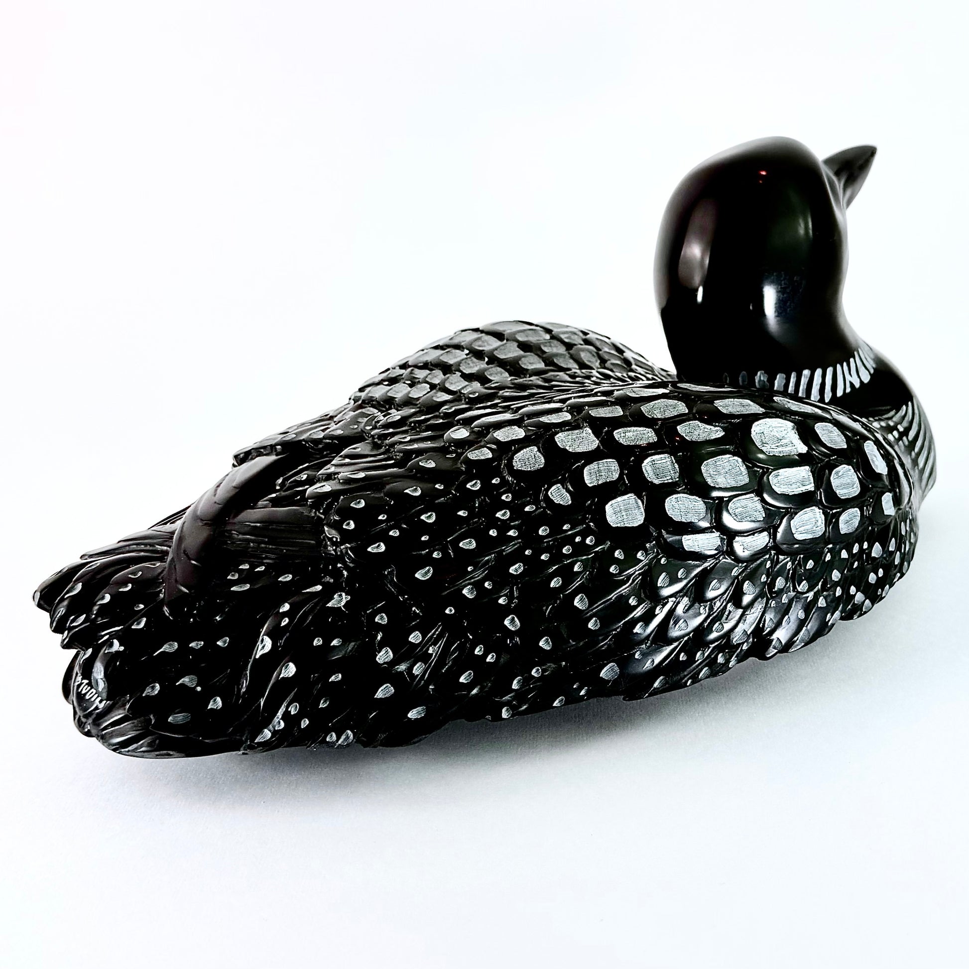 Discover the captivating beauty of our Loon Stone, a striking sculpture handcrafted from BC Black Chlorite. This impressive piece measures 15" x 8" x 6" and weighs a substantial 18 lbs, making it a commanding presence in any space. Sourced and created right here in British Columbia, Canada, this stone art celebrates the natural elegance of local materials. The deep, rich tones of black chlorite create a sophisticated aesthetic that complements both contemporary and traditional interiors. Whether displayed as a focal point in your home, garden, or office, this substantial stone sculpture brings an authentic connection to Canadian craftsmanship and natural artistry. Perfect for collectors and art enthusiasts seeking meaningful, locally-made pieces with genuine character and presence.