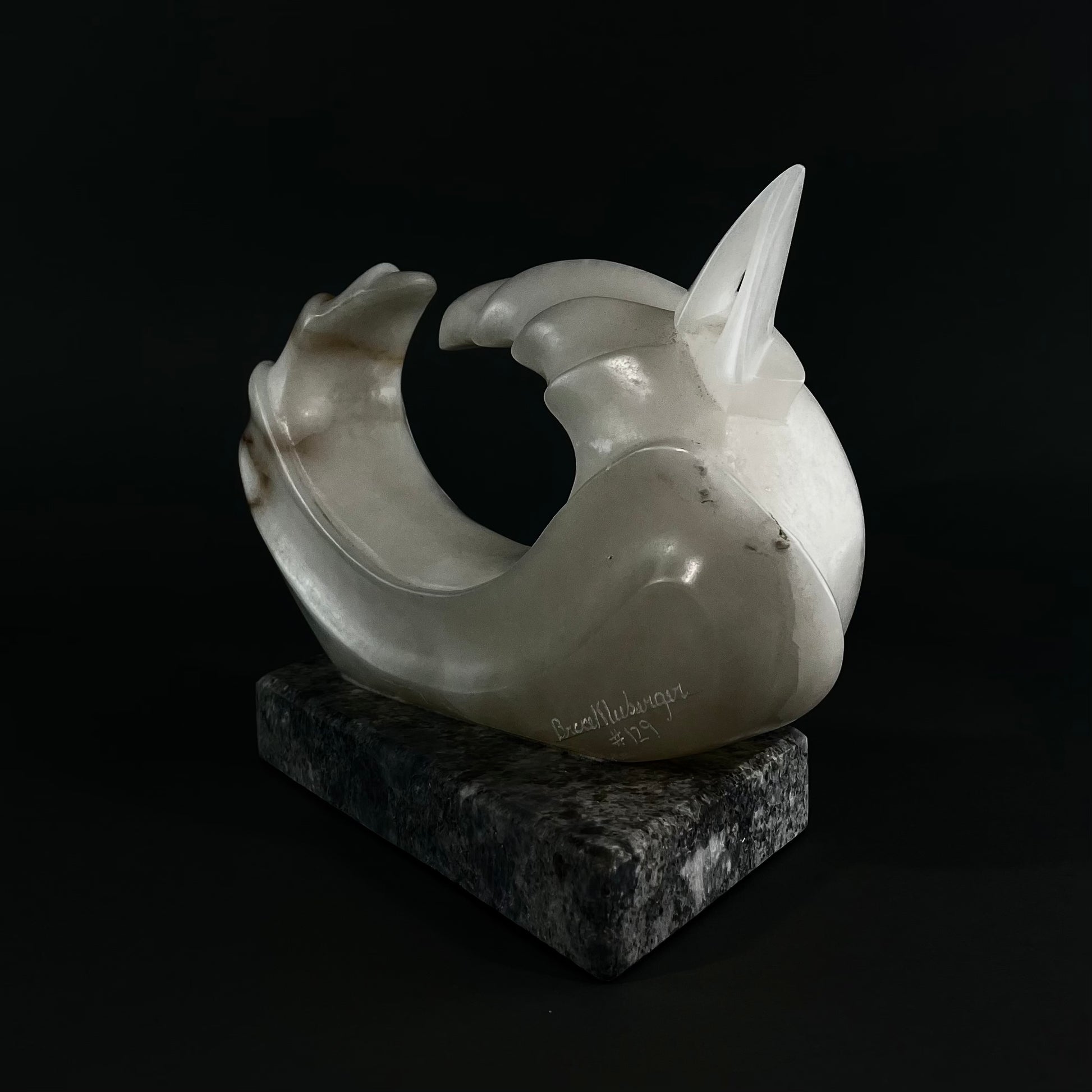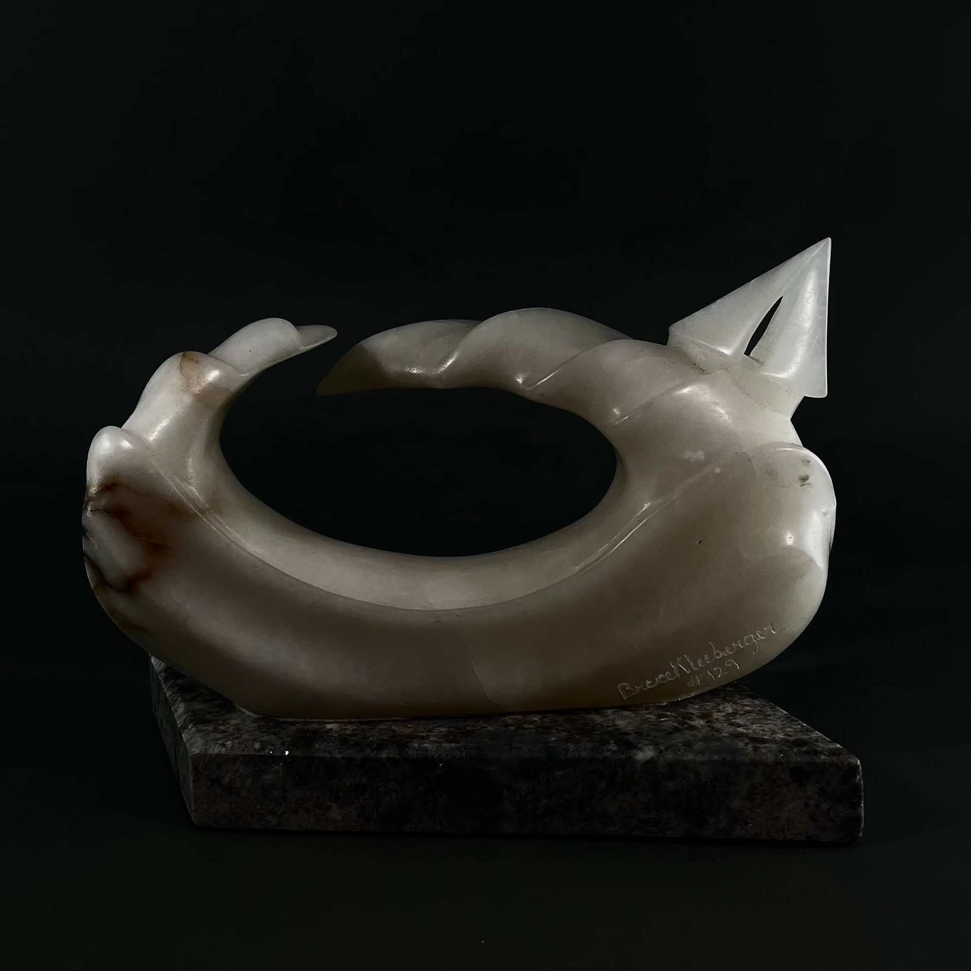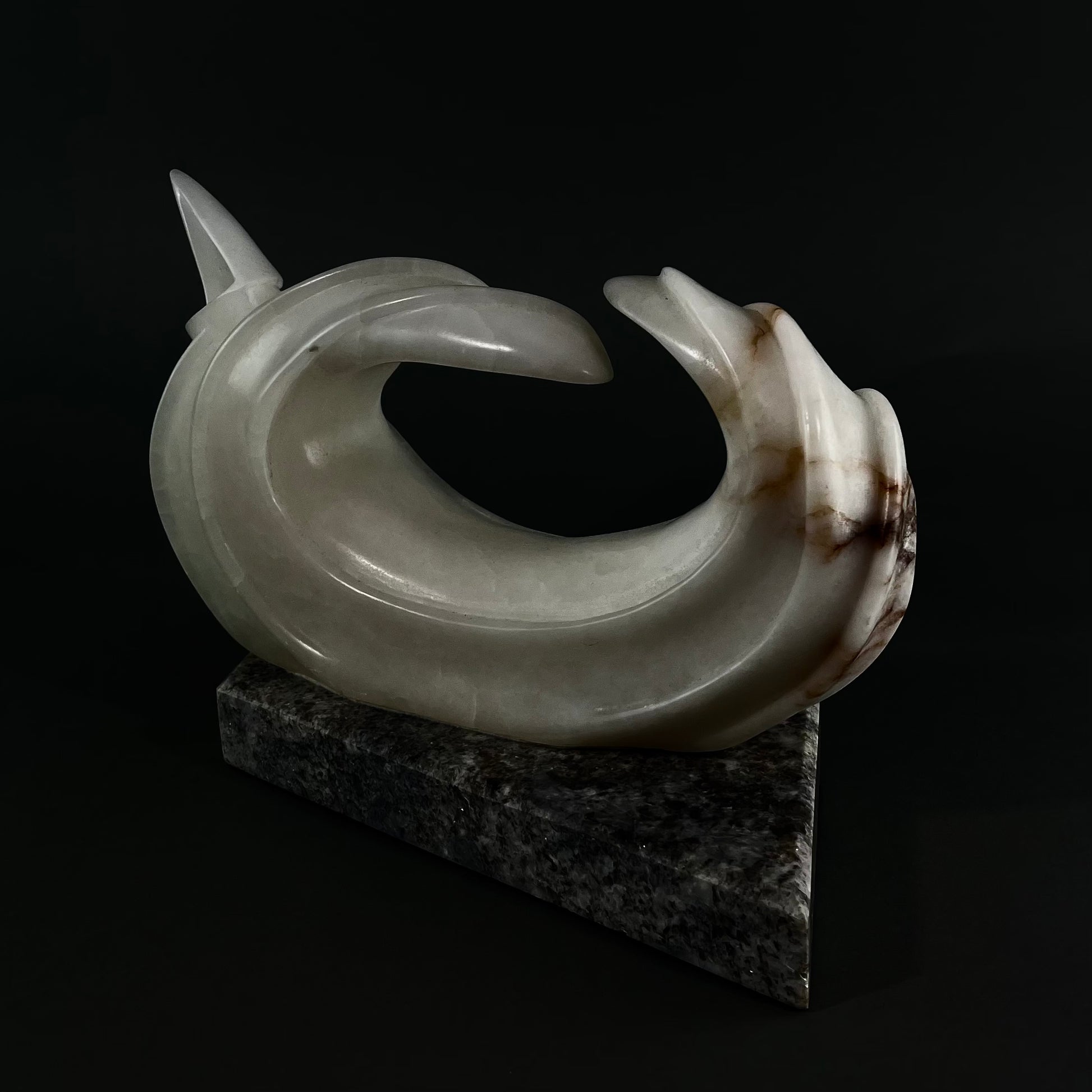 Weighing 12 lbs and measuring 12" x 4.5" x 8", this piece is both compact and impactful, drawing the viewer's eye to its intricate details and smooth, polished surfaces. The marble base provides a solid foundation, contrasting with the delicate, ethereal alabaster, and grounding the sculpture's sense of motion. Carved in British Columbia, Canada, "Sailing Waveform" reflects the region's natural beauty and the artist's skill in manipulating light and form. This sculpture invites contemplation and evokes a sense of tranquility and endless possibility, making it a captivating addition to any art collection.