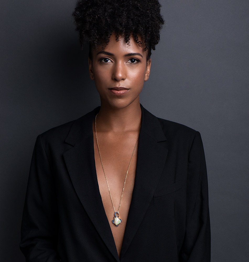Precious metals: 14kt yellow gold chain, 18kt yellow gold pendant, Partial black rhodium-plated finish